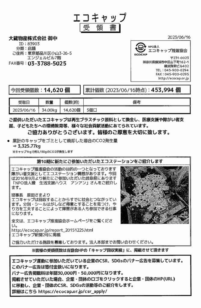 2. エコキャップ回収・配送